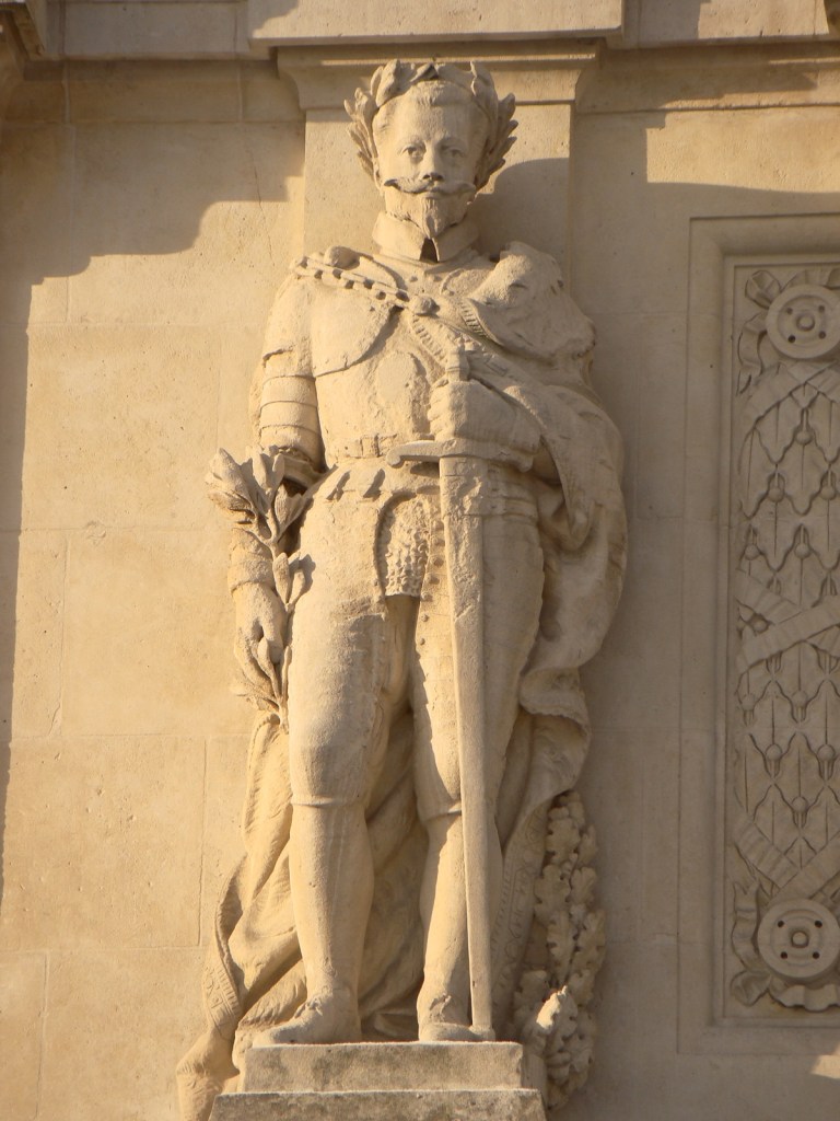 Ah. Toi je suis pas sûr. Barbiche, armure, épée, ça fait Henri IV un peu. Mais pourquoi? Ça n’a aucun sens. Et que faire de ces lauriers, à part un bœuf bourguignon ou un plat équivalent mais avec des lentilles pour si t’es vegan? Bon, je vais devoir ouvrir un livre (mon coach mascu fragile fait un AVC rien qu’à lire cette phrase). Et? Et c’est Charles III, not’ bon duc, eh oui. J’aurais jamais trouvé en fait. Merci les livres.